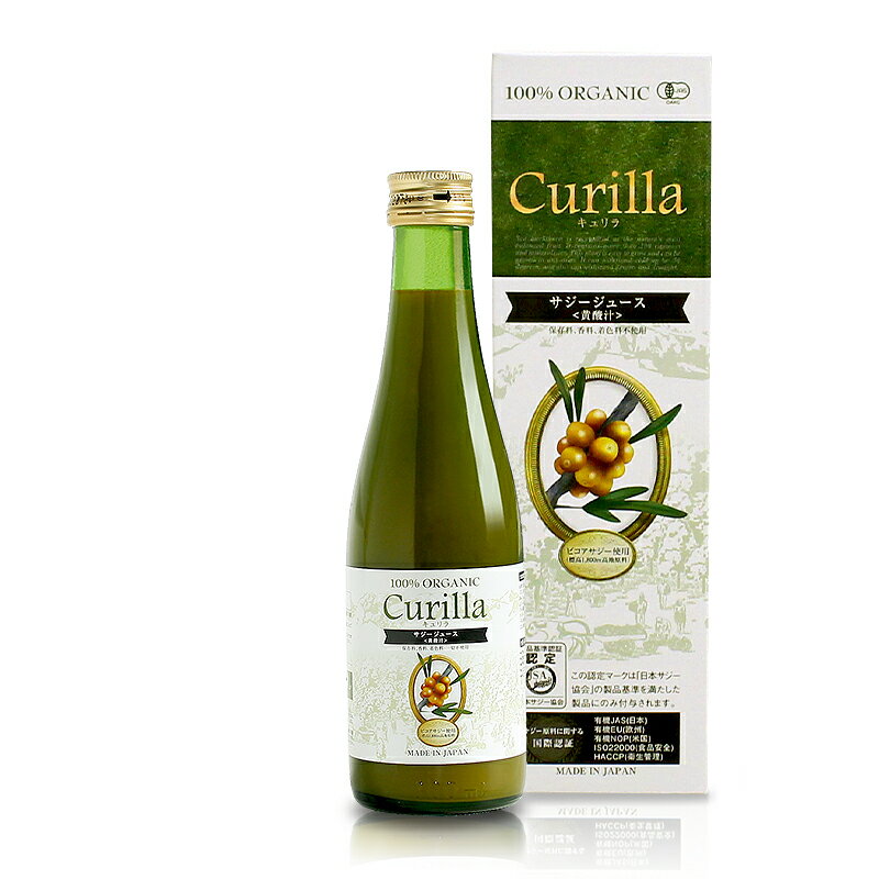 キュリラのサジージュースは、日本・アメリカ・ヨーロッパのオーガニック(有機)認証を取得したサジー原料を使用し、さらに、残留農薬検査・放射能検査・清涼飲料水規格試験など数々の検査を実施。